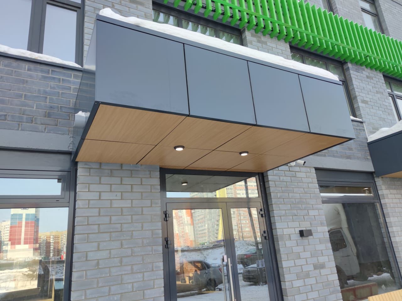 Для остекления дома ГП-1 жилого комплекса Колумб федерального застройщика Страна в Тюмени компания Наяда изготовила витражи наружные на профиле Alutech F50 с теплыми дверями Nayada-Fasad из профиля Alutech W62. Для межэтажных тамбурных перегородок использована система Alutech F50 с дверями Nayada-Fasad из холодного профиля C43, отдельностоящие остекленные подъездные двери Nayada-Fasad из холодного профиля C43. Противопожарные окна на профиле Alutech. Для облицовки козырьков были использованы алюминиевые композит панели, потолок козырьков изготовлен из компакт пластика HPL.