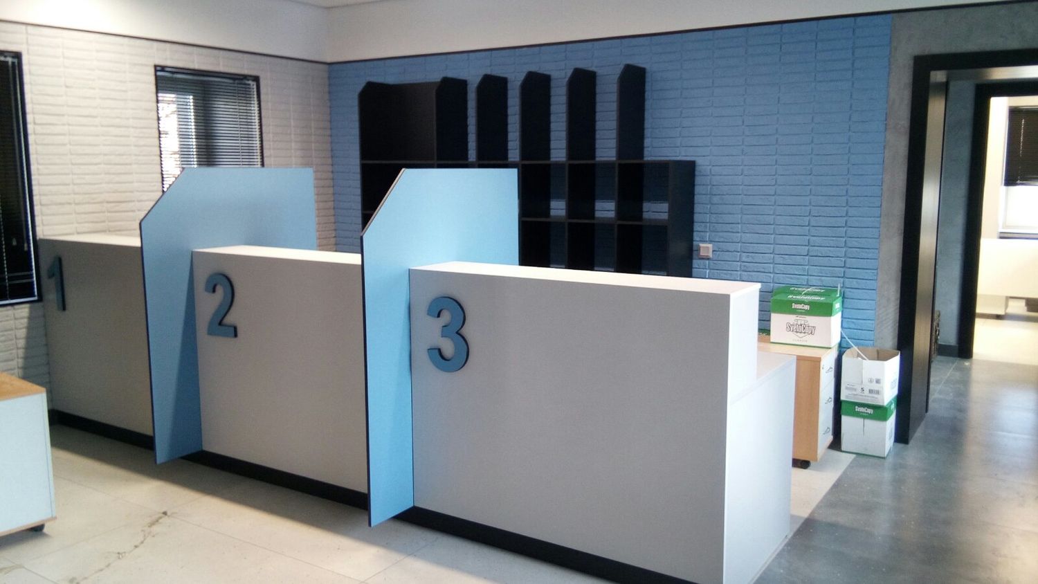 В офисе Сталепромышленной компании компания Nayada установила стойки администраторов собственного производства по индивидуальному дизайну. Также была изготовлена и смонтирована корпусная мебель.
