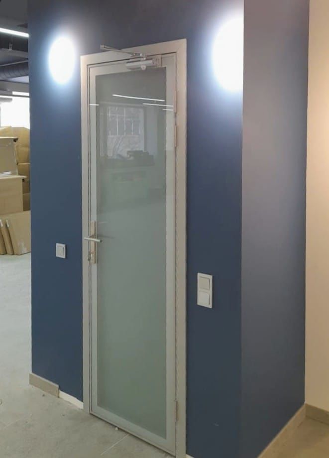 На объекте Концерн "Калина" в г. Екатеринбурге установлены офисные перегородки Nayada Crystal из закалённого стекла, с нанесением декоративной пленки и остекленные межкомнатные двери из серии Nayada-Vitero.