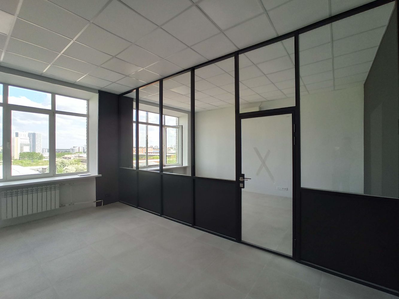 В новом офисе торговой компании «Кредос» были установлены перегородки Nayada Quadro. Лофтовский стиль и чёрные прямые линии.