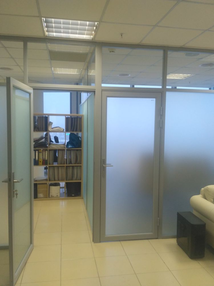 Для решения задачи компания Nayada изготовила и установила систему перегородок NAYADA Standart на алюминиевом профиле с двойным матовым остеклением.