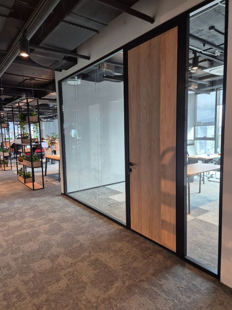 Установка дверей и перегородок в центральном офисе Застройщика Брусника