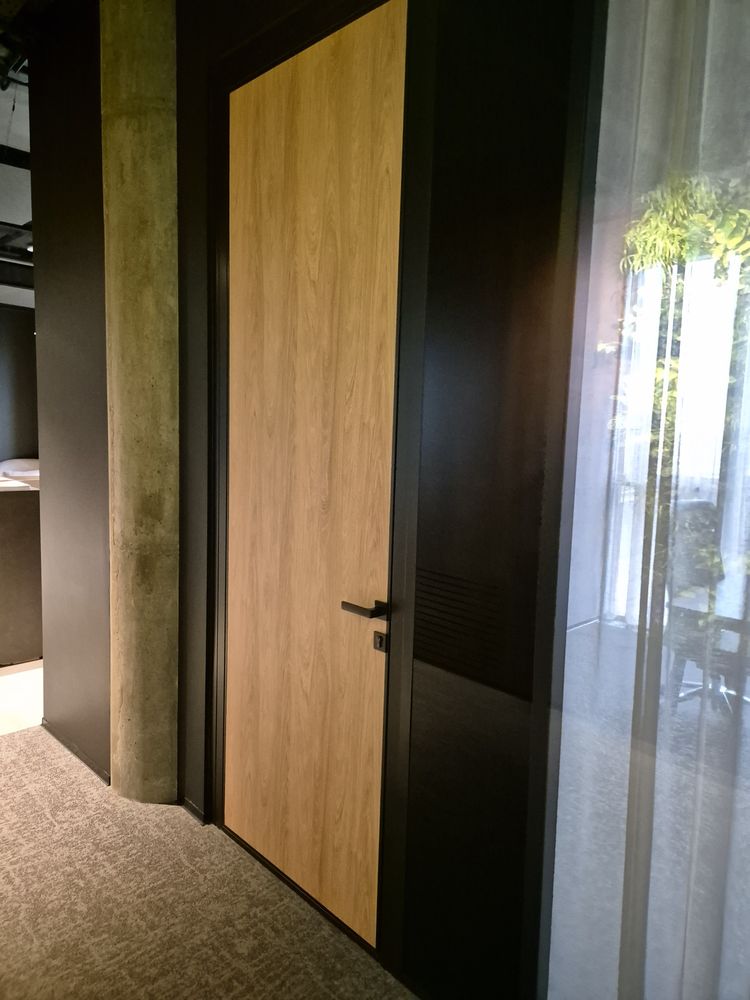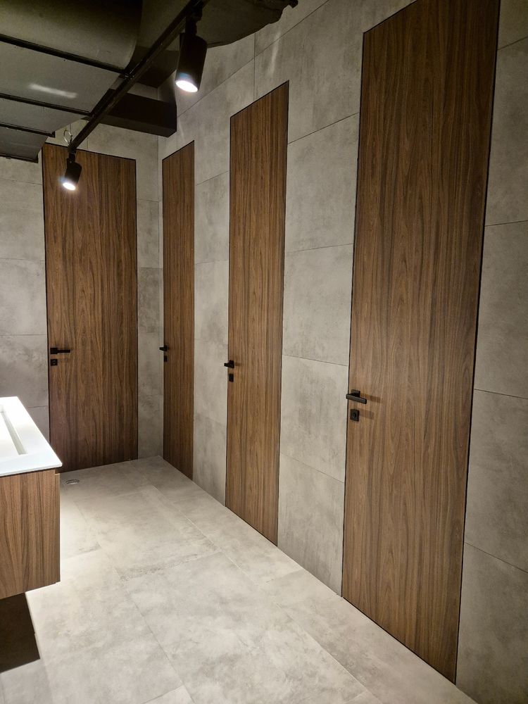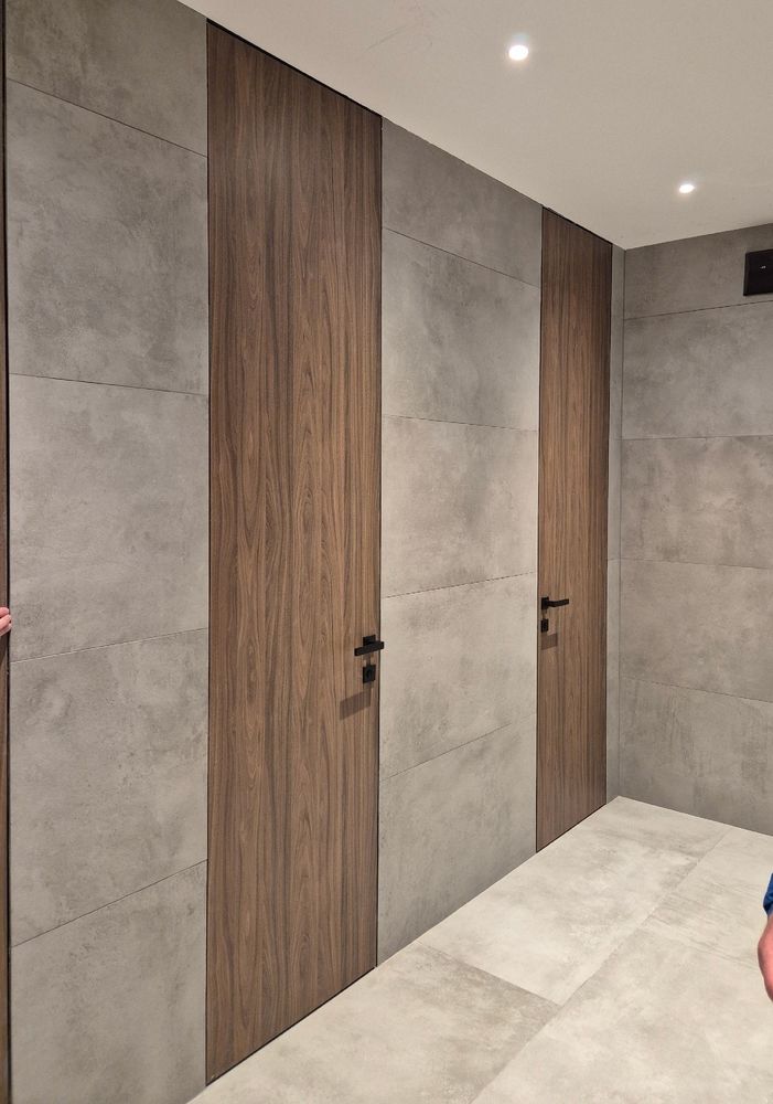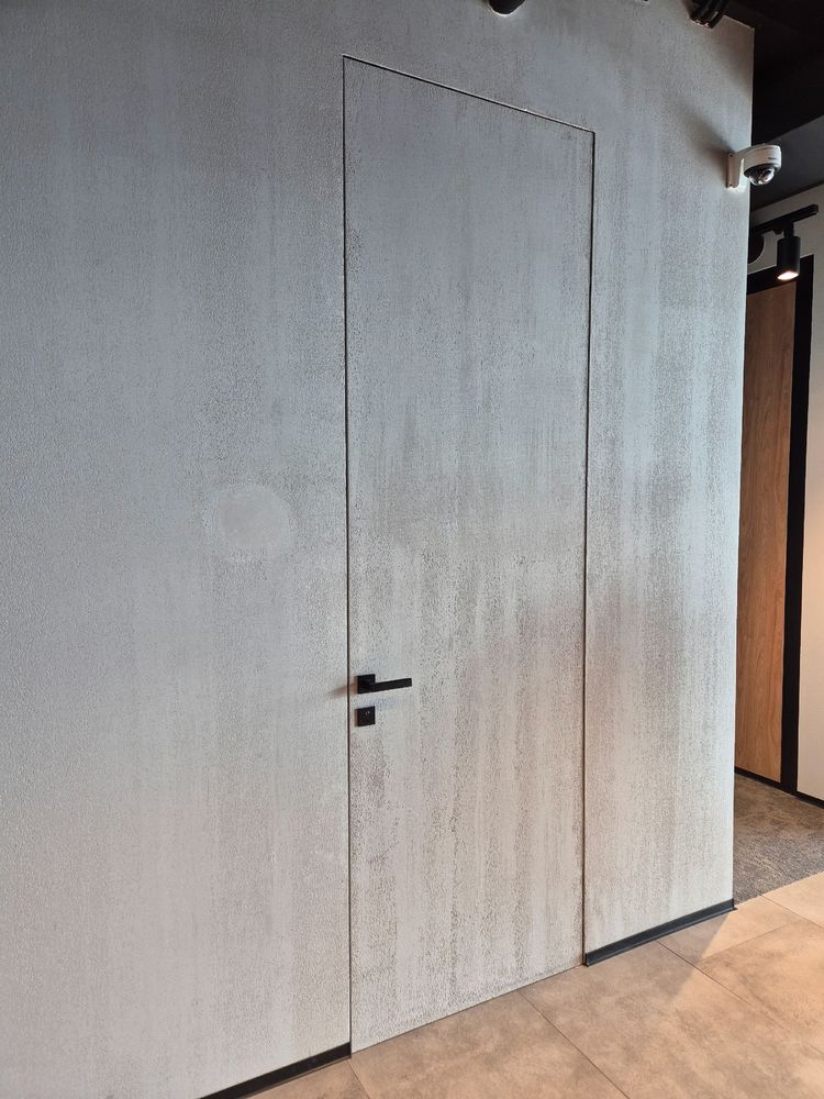 Во всех дверных проемах смонтированы двери со скрытой коробкой с применением ламинированных полотен и окрашенных полотен