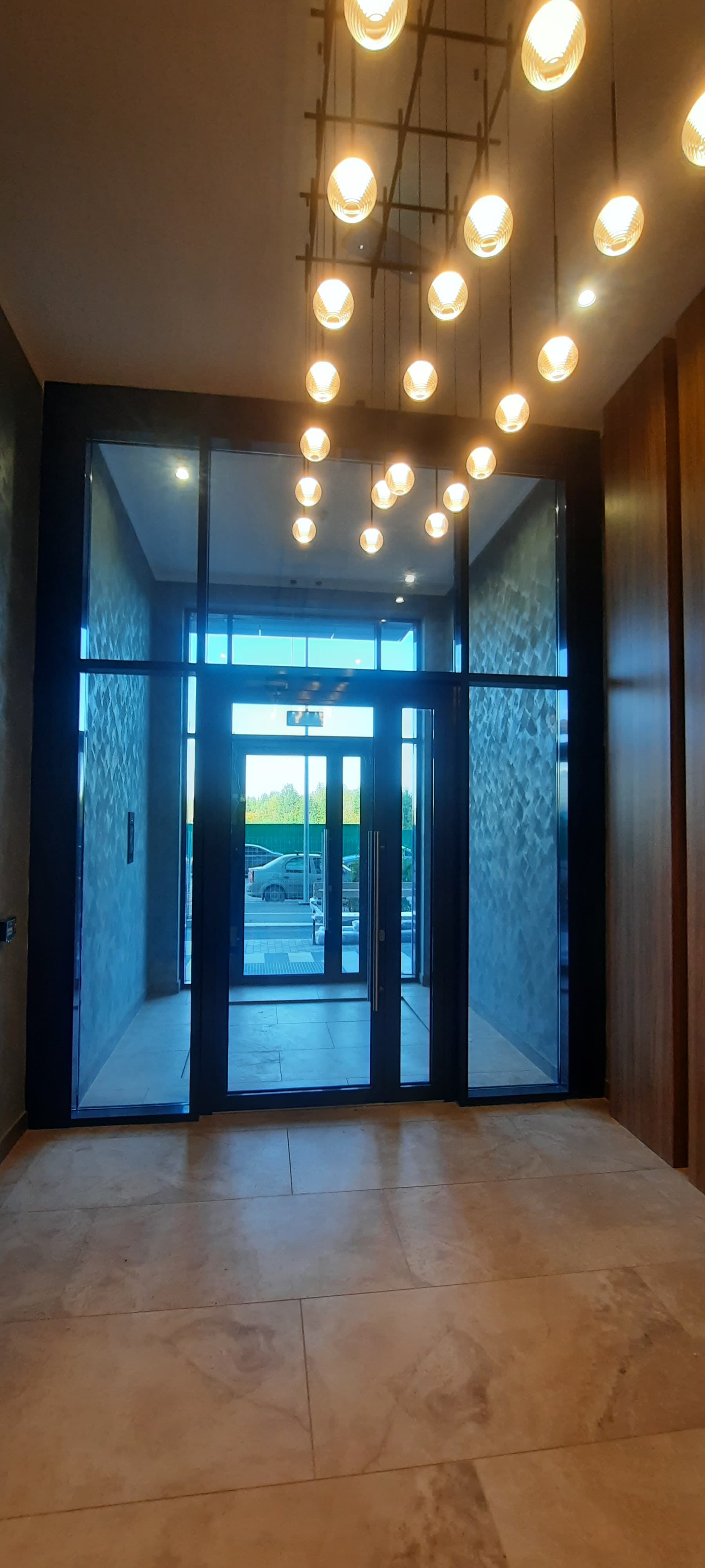Внутренние холодные алюминиевые витражи Инициал стоечно-ригельная система F50+ со встроенными дверными створками IP45. Внутренние витражи создают ощущение открытого пространства и визуально расширяют помещения.