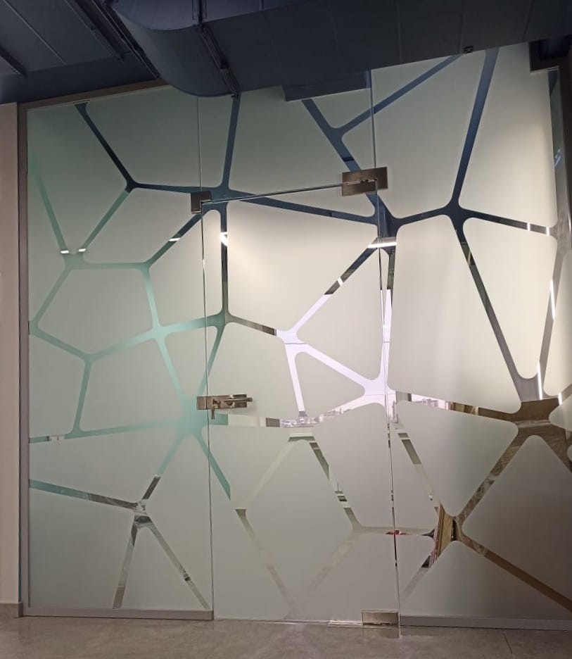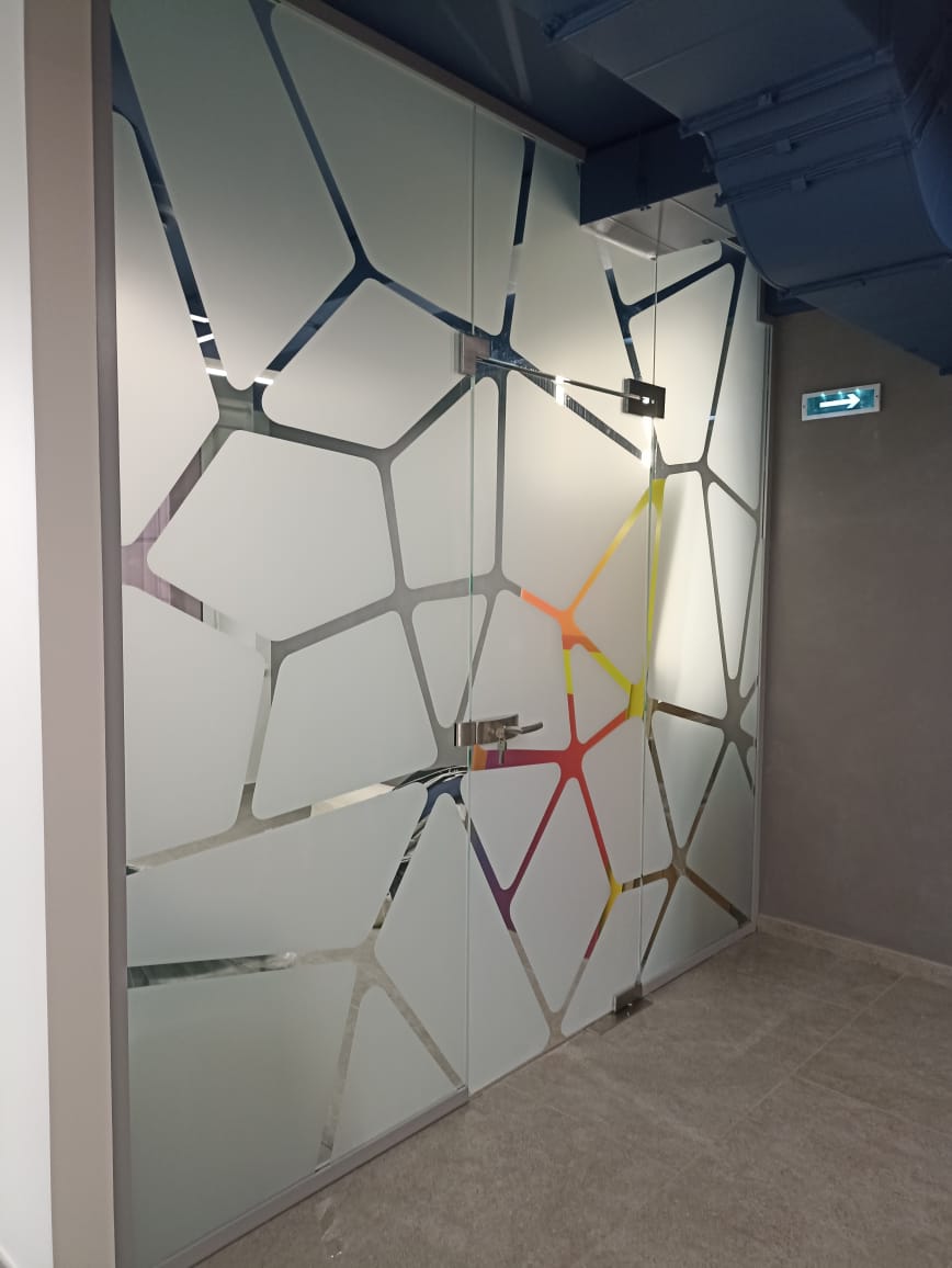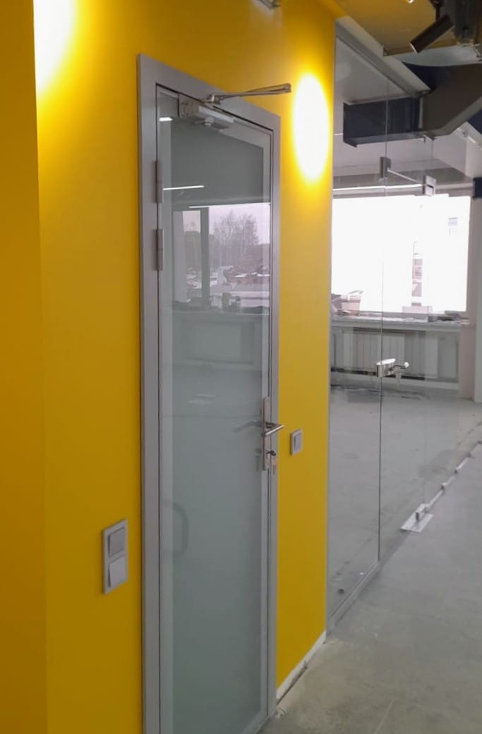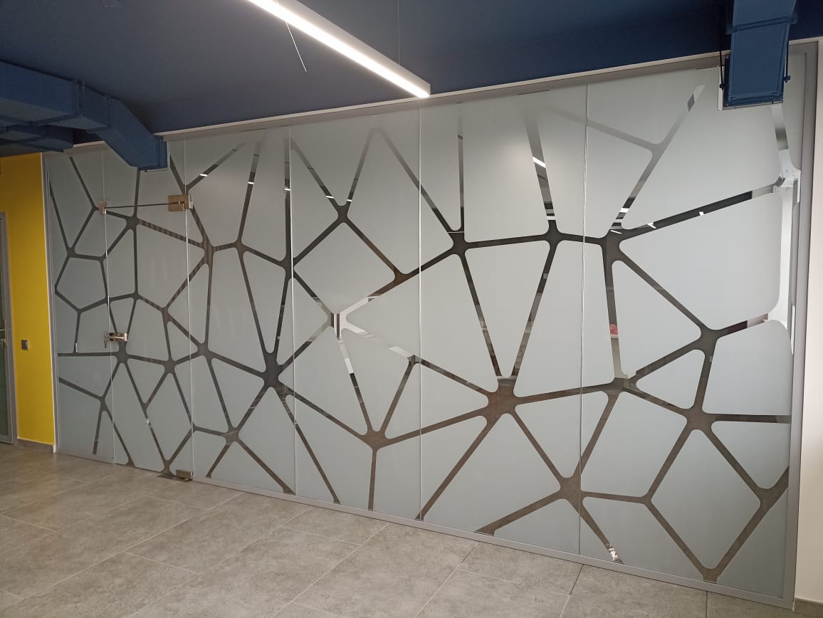 На объекте Концерн "Калина" в г. Екатеринбурге установлены офисные перегородки Nayada Crystal из закалённого стекла, с нанесением декоративной пленки и остекленные межкомнатные двери из серии Nayada-Vitero.