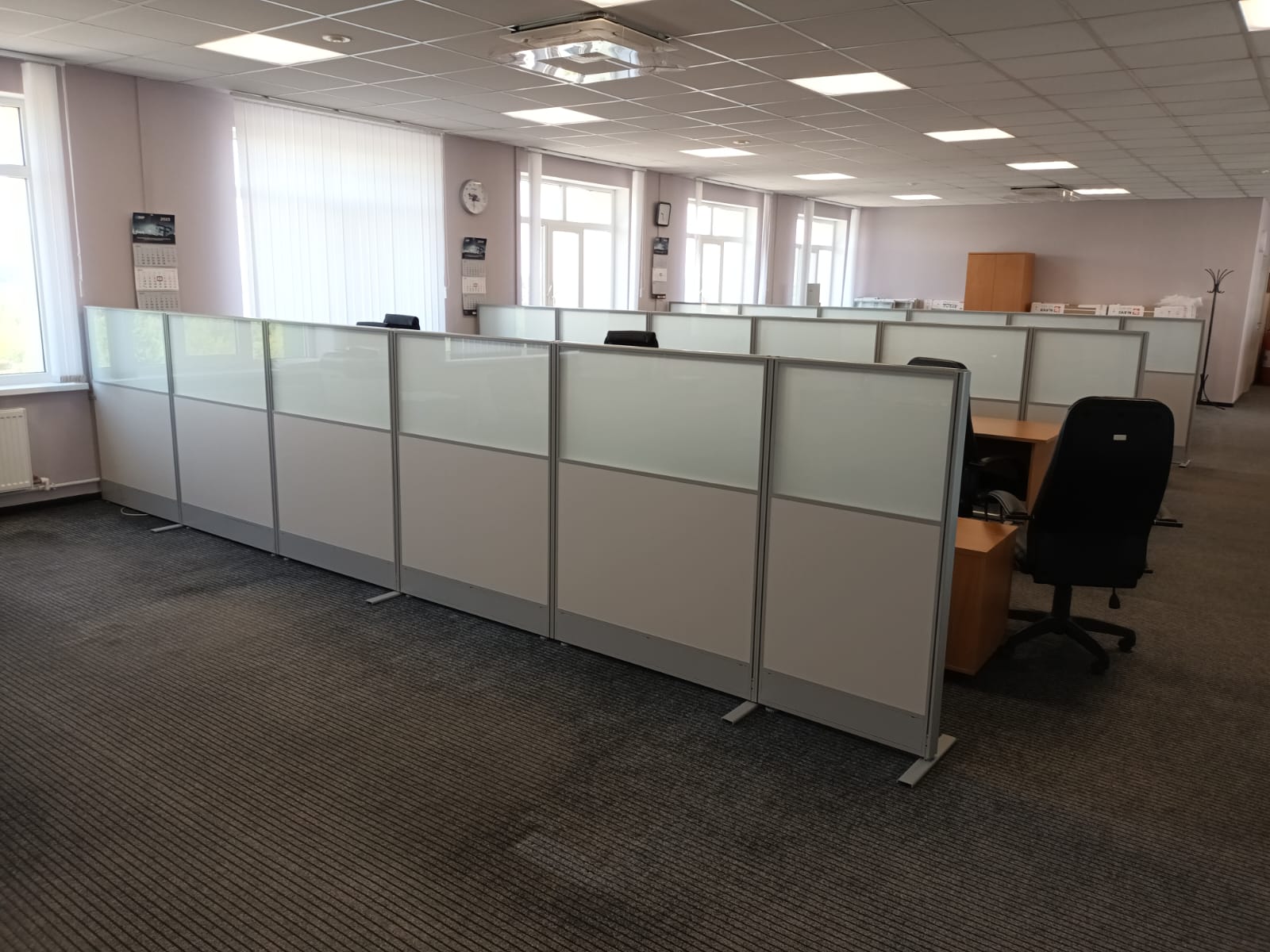 В Омске в офисе компании установлены перегородки Мобильные перегородки Nayada-Optima с матированным стеклом и ЛДСП.