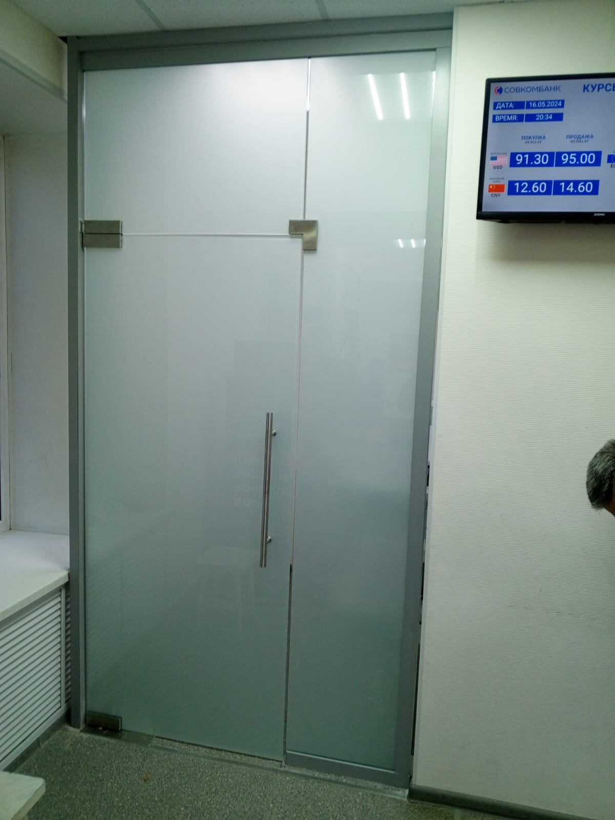 Данная перегородка от Наяды выполнена из закаленного матового стекла, 10 мм. По периметру перегородки зажимной профиль. Окрасить профиль можно в любой цвет по каталогу Ral. В составе цельностеклянной перегородки дверь, распашная, однопольная, без рамы. Стеклянная перегородка оснащена напольным доводчиком для плавного закрывания дверей.